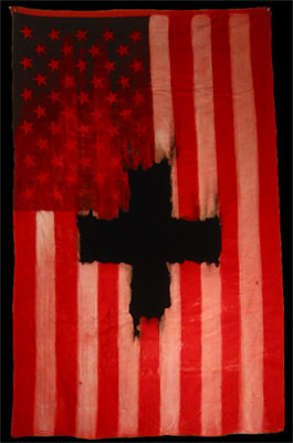 Acrylic and velvet burned into US flag